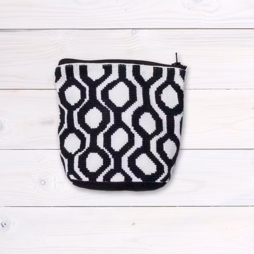 Necessären broderas med två trådar bomullsgarn 16/2. Broderistygn är korsstygn. Necessärens botten är av svart linnetyg. Broderisatsen innehåller räknelinne 10,5 tr/cm, svart linnetyg till botten, fodertyg, dragkedja. mönsterbeskrivning och mönsterblad. Storlek efter montering 14 x 15 cm.